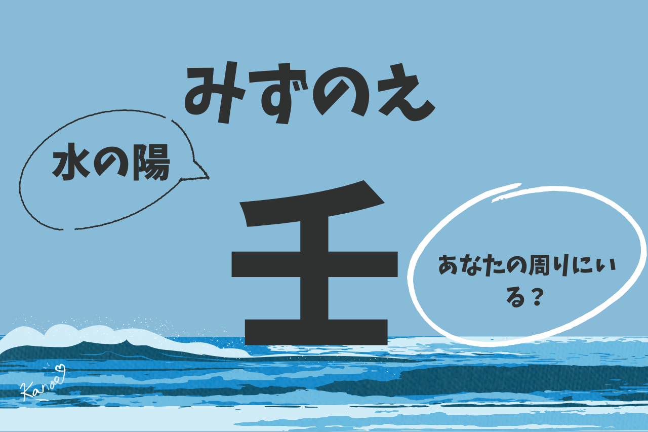 「壬」の言語は「任」(はらむ)で、冬になって陰の気が陽の気の中にはらみ、万物を閉じ込める状態を表しています。お母さんの胎内の羊水にも通じ、生命を転生させる働きが表されています。